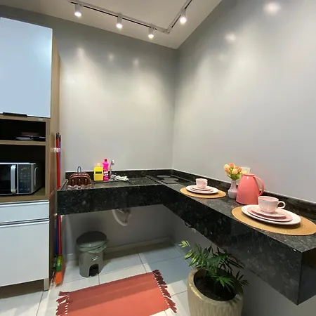 Os hóspedes terão acesso à kitchenette no Flat há 2km do centro, permitindo a preparação das refeições caseiras deliciosas.